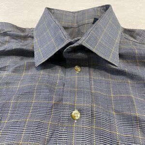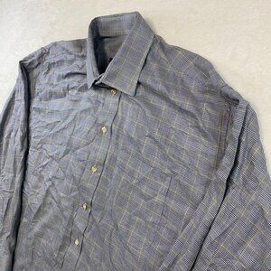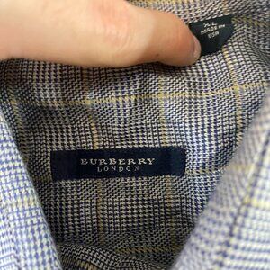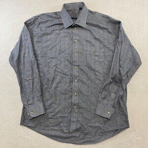 Burberry London Dress Shirt Mens XL Nova Check Plaid Houndstooth Button Up Gray