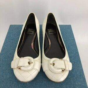 Burberry Off-White Leather Quilted "Stirrup" Buckle Ballet Flats size 39 = 8