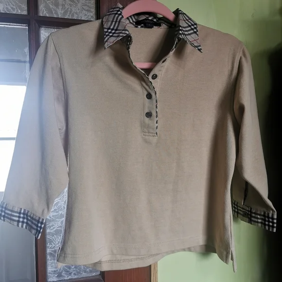 Lovely Burberry polo shirt! In fabulous condition. Ultra comfortable and functional 3/4 length sleeves. Stored in a smoke and pet free environment. Size L.