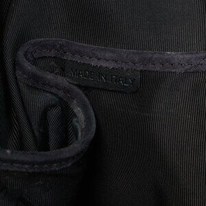 Composition: Suede, metal hardware, textile lining