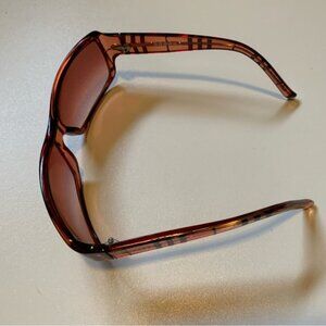 Stylish Burberry sunglasses in a rich red & brown hue. Comes with a signature checkered case. Perfect for adding elegance to any outfit.