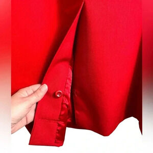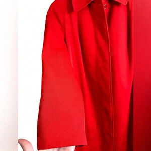Elegant Burberry trench coat. Striking red color. Classic design.