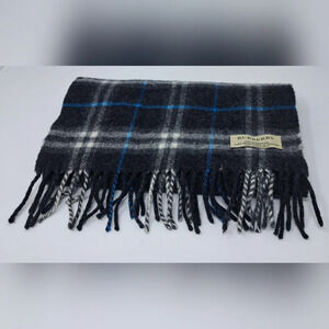 Burberry Scarf Navy Check 100% Lambswool Scotland 52" x 11.5"