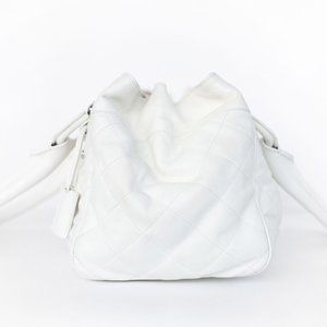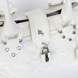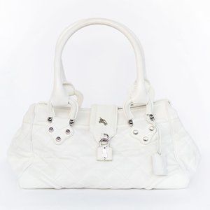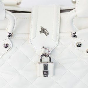Description: Burberry white quilted shoulder bag with lock