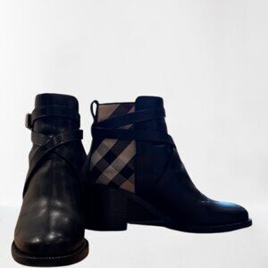 Burberry Stebbingford Check Ankle Boots in Black Leather- Size 40
