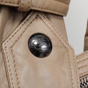 Burberry Taupe Grey Brown Leather Moto Trench Coat