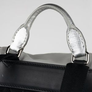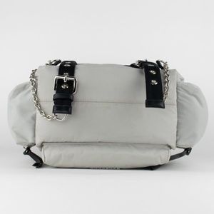 From Burberry comes this wonderful Technical Nylon Large Rucksack Backpack, perfect for your outdoor ventures. This backpack comes in light grey nylon with metallic silver leather trim, silver-tone hardware, three exterior zip pockets, four snap button closure that opens up the flap at the front, drawstring front closure with open top, jacquard lining, a single open interior pocket, a zip pocket, a rolled exterior handle at top, dual adjustable straps with chain accents and diamond-quilted padded back panel at the back.