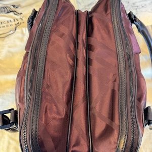 Burberry Tonal Check Burgundy Jacquard Nylon/Leather/Suede 2 zip Bowling Bag.