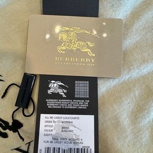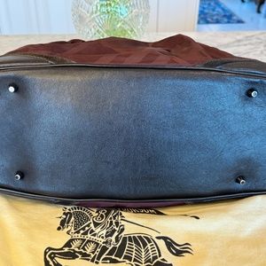 The classic Burberry Check is in a tonal burgundy nylon Jacquard material on these 2 fabulous carry on style bowling bags.