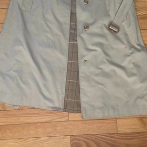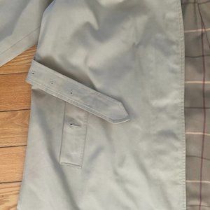 FYI. This is Burberry’s macintosh, not a trench coat. Trenches are double breasted with wide lapels.