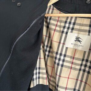 Burberry Vintage Men Black Lawrence Trench Coat with Removable Wool Vest Size 46
