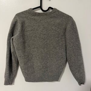 Vintage Burberry V-neck sweater in soft, warm wool. Tagged kids 4Y, but can fit an XXS or XS for adults. Classic grey shade with subtle Burberry crest logo detail at the hem. Excellent condition—no flaws or imperfections. A rare vintage find and a timeless cold-weather essential.