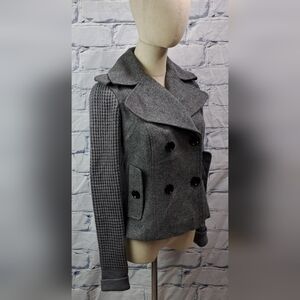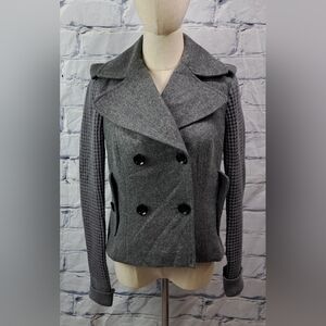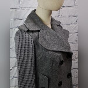 Burberry Women's Pea Coat Jacket Wool Chunky Knit Sleeves Gray Vintage Y2K 4 US