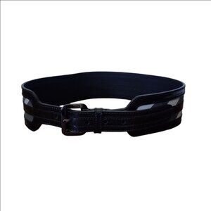 Burberry Women's Size 80/32 (M) Black Beat Check Patent Leather Wide Belt