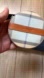 Elegant Burberry coin pouch with blue plaid design. Features brown leather stripe. Compact and stylish.