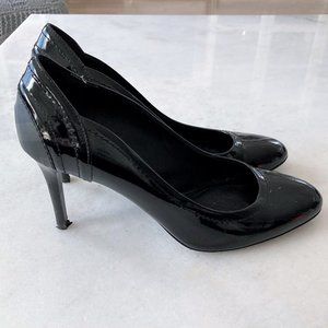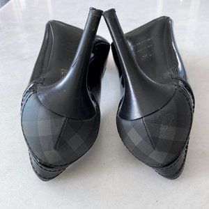 Burberry shiny black & plaid / check pumps, patent leather high heel shoes