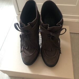 Brown/purple suede stilettos. Purchased from Holts. Brand new. Beautiful one of a kind shoes