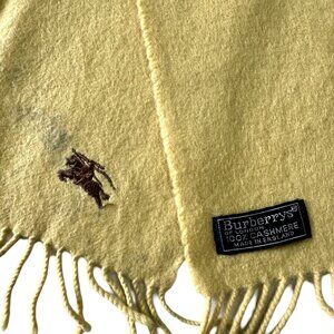 Burberrys Authentic Scarf Yellow 100% Cashmere Unisex Scarf Made In England