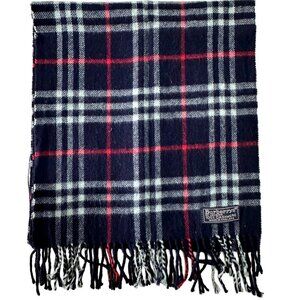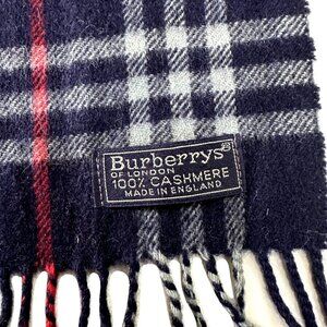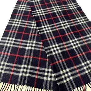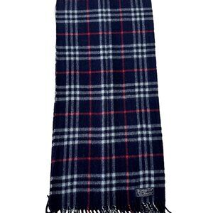 Stay warm and elegant with the classic Burberrys of London Check Scarf. Crafted from 100% cashmere in England, this unisex black scarf features the timeless Nova check pattern, blending sophistication with cozy comfort. Measuring a length of 52 inches excluding fringe and 12 inches wide, it’s a versatile accessory for fall and winter. Dry clean only. This multifunctional neck warmer is both practical and luxurious, making it a standout piece for any wardrobe.