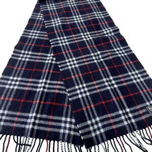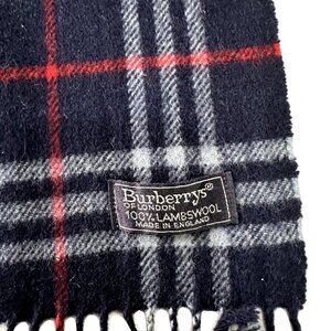 Stay warm and elegant with the classic Burberrys of London Check Scarf. Crafted from 100% lambswool in England, this unisex black scarf features the timeless Nova check pattern, blending sophistication with cozy comfort. Measuring a length of 50 inches excluding fringe and 10.5 inches wide, it’s a versatile accessory for fall and winter. Dry clean only. This multifunctional neck warmer is both practical and luxurious, making it a standout piece for any wardrobe.