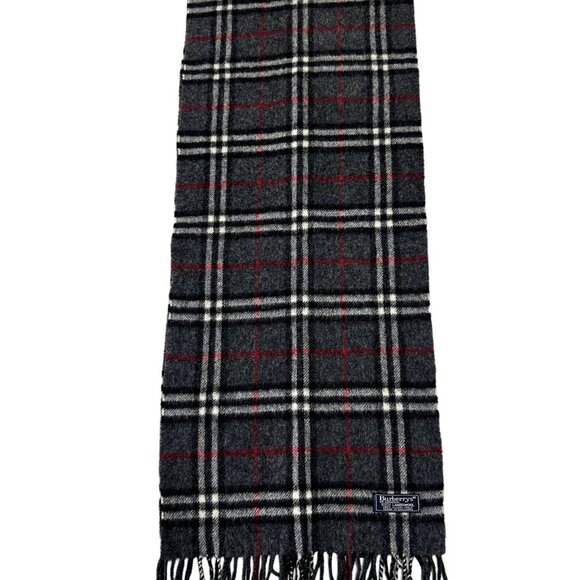 Stay warm and elegant with the classic Burberrys of London Check Scarf. Crafted from 100% Lambswool in England, this unisex black scarf features the timeless Nova check pattern, blending sophistication with cozy comfort. Measuring a length of 58 inches excluding fringe and 12 inches wide, it’s a versatile accessory for fall and winter. Dry clean only. This multifunctional neck warmer is both practical and luxurious, making it a standout piece for any wardrobe.
