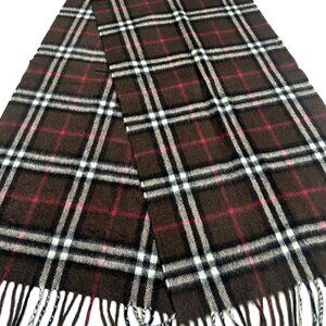 Burberrys Vintage Check Scarf Brown 100% Cashmere Unisex Scarf Made In England