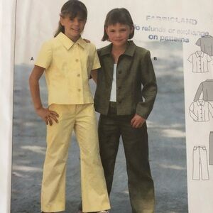 Stylish kids' ensemble pattern. Includes jacket and pants. Perfect for sewing enthusiasts. Burda 9988 Girls Top or Jacket and Pants