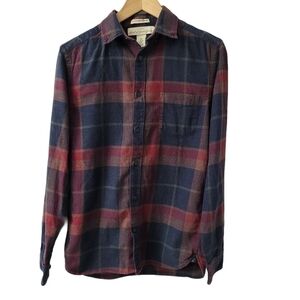 Burgandy Plaid Flannel Regular Fit High Low Button Front Shirt Size XS
