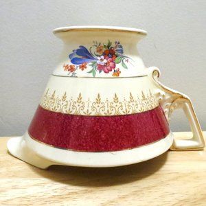 This vintage Burleigh gravy sauce jug pitcher boat is a must-have for any collector of 20th century porcelain. Made in England, it features a beautiful floral pattern in multicolor and has a lead-free glaze finish. The Zenith shape adds a touch of traditional style to any occasion, making it perfect for all occasions. Measuring 3 1/2 inches in height and 4 1/2 inch diameter. This gravy pitcher jug is made of high-quality porcelain and is an original Burleigh Ware product. With a capacity of 1.5 cups, this antique-inspired piece is sure to impress.