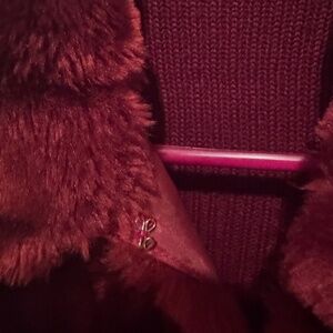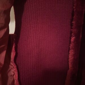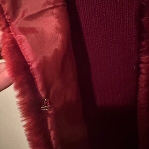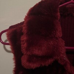 Stylish sleeveless faux fur vest in a deep burgundy color. Soft and cozy texture, perfect for layering over sweaters or dresses during fall and winter. In excellent condition.