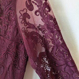 Burgundy Dress with sheer detailing on chest and arms