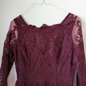 Burgundy Formal Sheer Dress L Large Bridesmaid Prom Wedding MANIJU