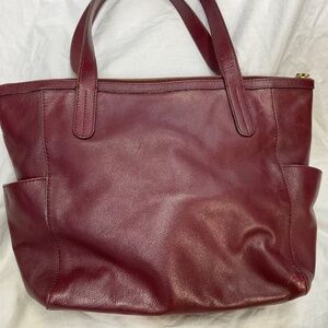 Burgundy Fossil Leather Shoulder Bag Tote