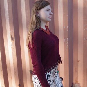 Sweater by garage ,women's burgundy color. The size is X-small ,pit to pit is 24 inches across. In good condition.Has a lace bottom.
