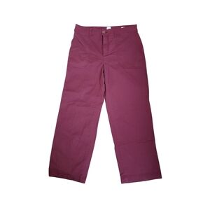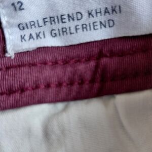 Chic burgundy Gap kaki pants with a girlfriend fit. Ideal for versatile styling.