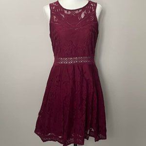 Burgundy Lace Dress Mini Length Sleeveless Size L