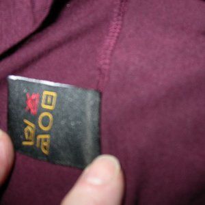 Burgundy rauched front zippered deep V-neck long sleeved tunic - 19" pit to pit - 34" shoulder to hem - 95% viscose , 5% spandex - hand wash, - new, never worn