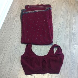 Burgundy Sari With Beaded Border Embellished Fabric With Blouse - M great condition