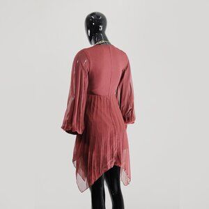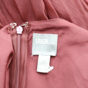 Dress to impress with this breathtaking burgundy midi dress from ASOS. The sheer fabric and flowy sleeves add an ethereal touch to your wardrobe, while the wrap front design and hi-lo hem create an alluring silhouette that celebrates your curves. Whether you're attending a candlelit dinner or a sophisticated soiree, this dress promises a look that's both timeless and trendy. New without tags and accompanied by a free jewelry gift, it's ready to become the crown jewel of your collection.