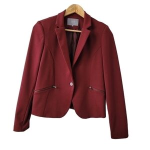 Burgundy Single Breasted Button Up Fitted Blazer Sz 6