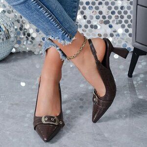 Sleek Closed Pointed Toe Slingback Heels: Our slingback pumps heels feature a closed pointed toe silhouette, exuding sophistication and charm, while the buckle strap adds a dash of coolness and allure.
