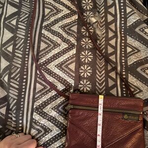 Burgundy Textured Leather Crossbody Bag with Angular Stitching