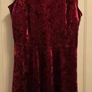 Beautiful deep burgundy velvet dress in a flattering fit-and-flare silhouette. Features a sleeveless design with a classic scoop neckline and a softly structured waist that flows into an elegant skirt. Rich crushed velvet fabric gives it a luxe look, perfect for holidays, parties, weddings, or evening events.