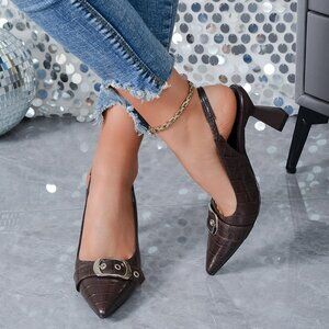 Sleek Closed Pointed Toe Slingback Heels: Our slingback pumps heels feature a closed pointed toe silhouette, exuding sophistication and charm, while the buckle strap adds a dash of coolness and allure.