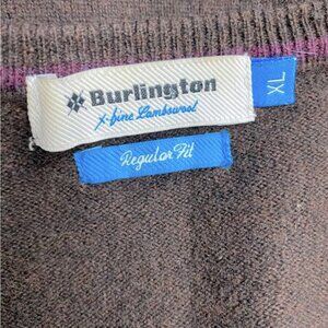 Burlington Brown Blue Tan Extra Fine Lambswool V Neck Pullover Light Sweater XL