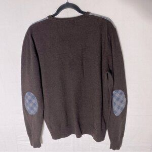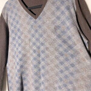 Burlington Brown Blue Tan Extra Fine Lambswool V Neck Pullover Light Sweater XL