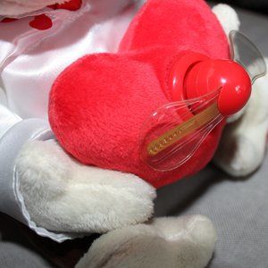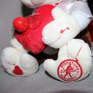 100% official licensed Signature Elvis Presley stuffed plush Elvis Presley singing and dancing monkey holding a heart pillow that has a light up propeller fan that displays "I love you", "Be Mine" and "❤❤❤❤❤" when in motion. Manufactured by Carlton Cards for year 2000 release. Monkey comes with Elvis hair and iconic jacket and cape. Sings the song "Burning Love" as recorded by Elvis Presley in 1972. Battery included, works like brand new. Very scarce vintage collectible, long since sold out.