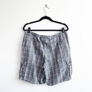 Burnside Mens Cargo Shorts Side Pockets Plaid Blue Gray Size 36