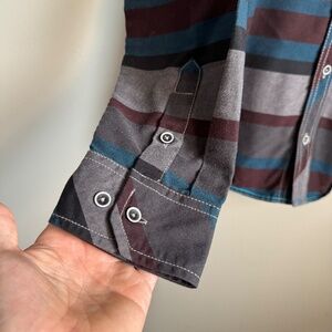 Burnside Mens Cotton Blend Long Sleeve Button Up Casual Dress Shirt Size Large