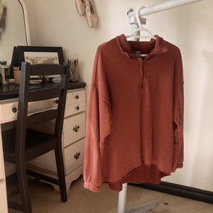 Burnt orange/brown zip-up sweater for Aerie, loose fit (can be tucked), size small, original condition (unworn). Perfect for cuddling up inside during those rainy autumn days! ๐๐